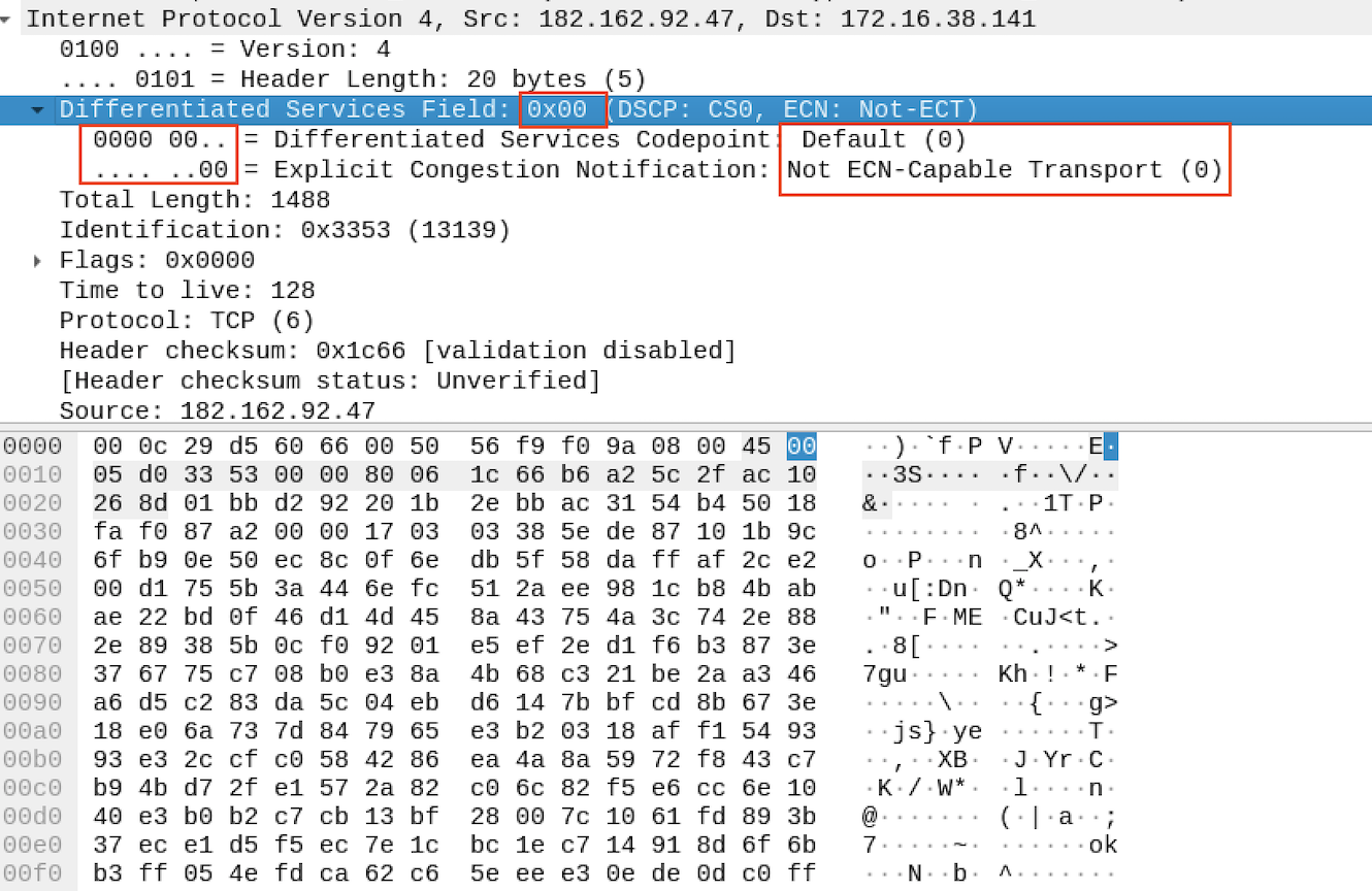 DF값이 0으로 단편화가 이루어지지 않은 패킷임을 알 수 있다. Fragment Offset