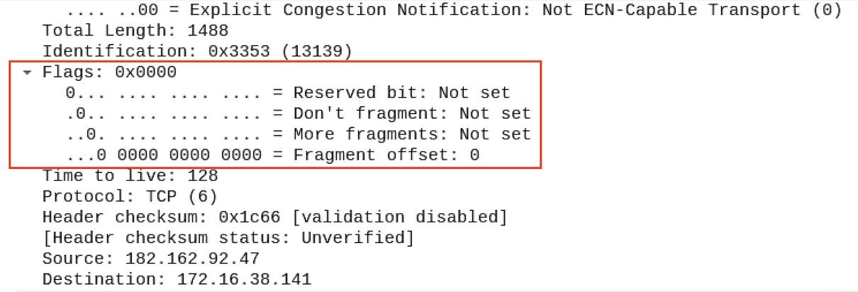 DF(Don't Fragment) : 1 - 단편화 x / 0 - 단편화 o