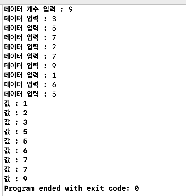 그리고 데이터의 위치를 서로 바꾸어야 할 때 바꿀 데이터를 임시로 저장할 공간 2개가 필요하다.