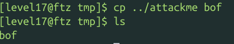 attackme를 tmp로 우선 복사해서 bof를 gdb로 열어보자
