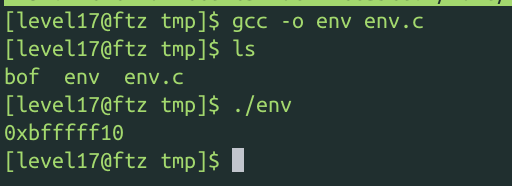 env.c를 만들고 컴파일해서 실행함으로써 내가 등록한 환경변수의 주소값을 알아오자.